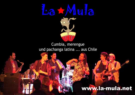 ...die Fusion verschiedener lateinamerikanischer Rhythmen wie der Cumbia, dem Wawanco, Ska und Merengue mit dem Ziel mit nur einer Gruppe von Musikern eine wahre Fiesta oder Pachanga Latina zu schaffen. La Mula besteht aus 7 Musikern, die zudem aktiv in der Verbreitung kubanischer und anderer lateinamerikanischer Rhythmen in verschie-denen Bands in Berlin tätig sind. Mit dieser Mischung aus Wurzeln, Kulturen und musikalischen Tendenzen macht La Mula bereits PACHANGA LATINA in Berlin.... |